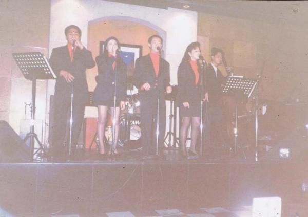 with june repiedad-bass,lhetlet bacatan-soprano,edylyn puno-alto,homer fernandez bassist & Dok ronnie pasajol - pianist ![]() Manila Diamond hotel sky Lounge 1995 |